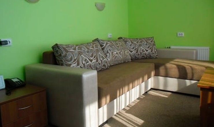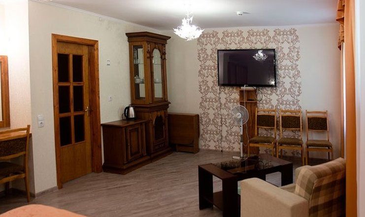 В номере: кровать двуспальная, кровать односпальная, прикроватные тумбочки, шкаф, мягкая мебель, телевизор в каждой комнате, холодильник, чайный набор посуды