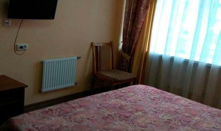 В номере: кровать двуспальная, прикроватные тумбочки, шкаф, мягкая мебель, телевизор, холодильник, чайный набор посуды