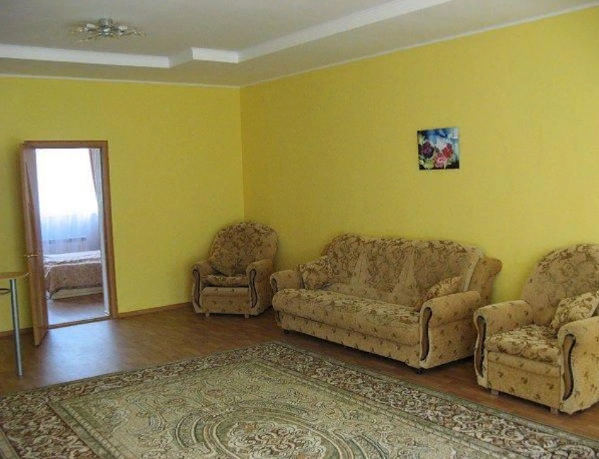 В номере: Телевизор, холодильник, Wi - Fi, телефон, утюг, чайник, двуспальная кровать, кофейный столик, платяной шкаф, фен, белые махровые халат и тапочки.