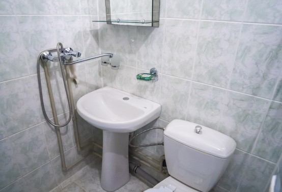 Санузел: унитаз, умывальник, душ, фен